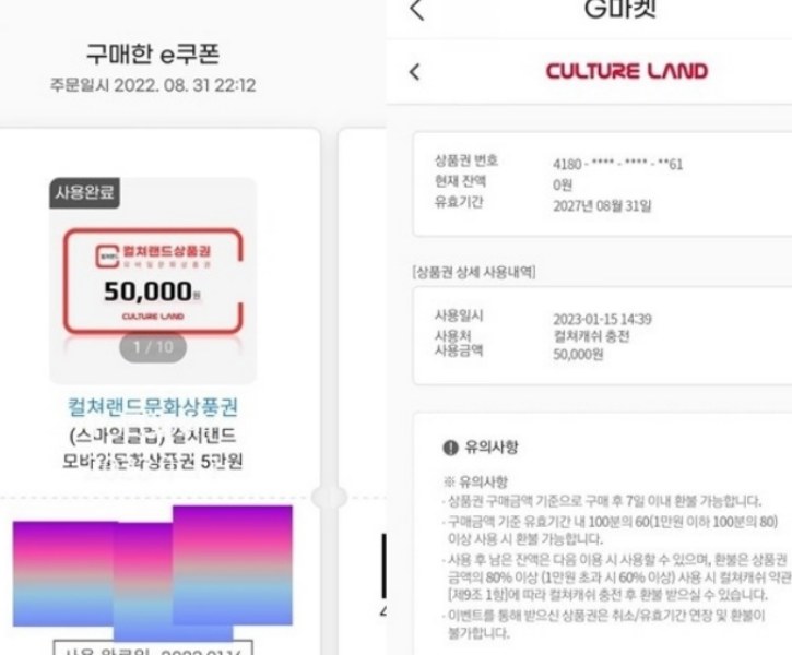 지마켓에서 구입한 컬쳐랜드 상품권 등 온라인 상품권이 사라지는 사건이 발생해 사용자의 주의가 요구된다. 쇼핑 온라인 커뮤니티에 ‘지마켓에서 구입한 컬쳐랜드 상품권 오십만원이 털렸다