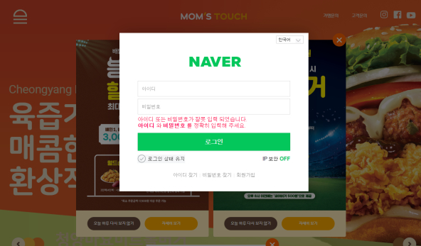[단독] 맘스터치 홈페이지 해킹 의혹... "가짜 네이버 로그인 팝업 송출, 이용자 피해 우려" - 뉴스