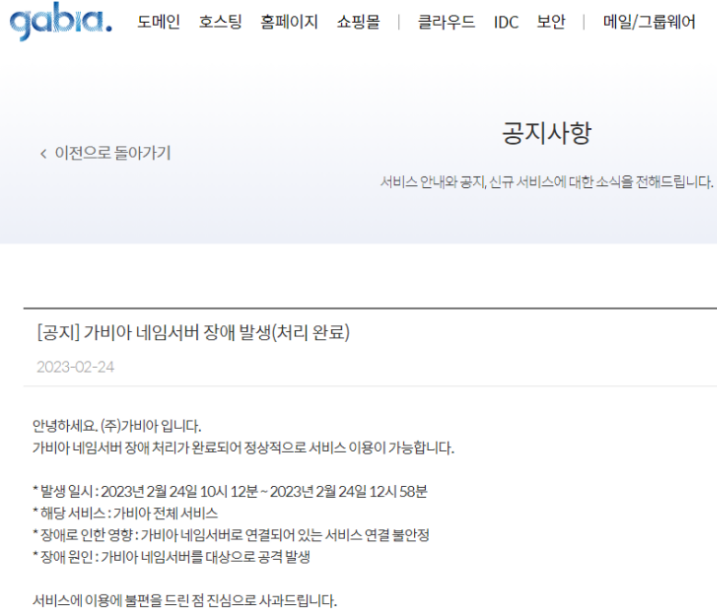 가비아, 디도스 공격으로 네임서버 장애... 현재 서비스 정상화