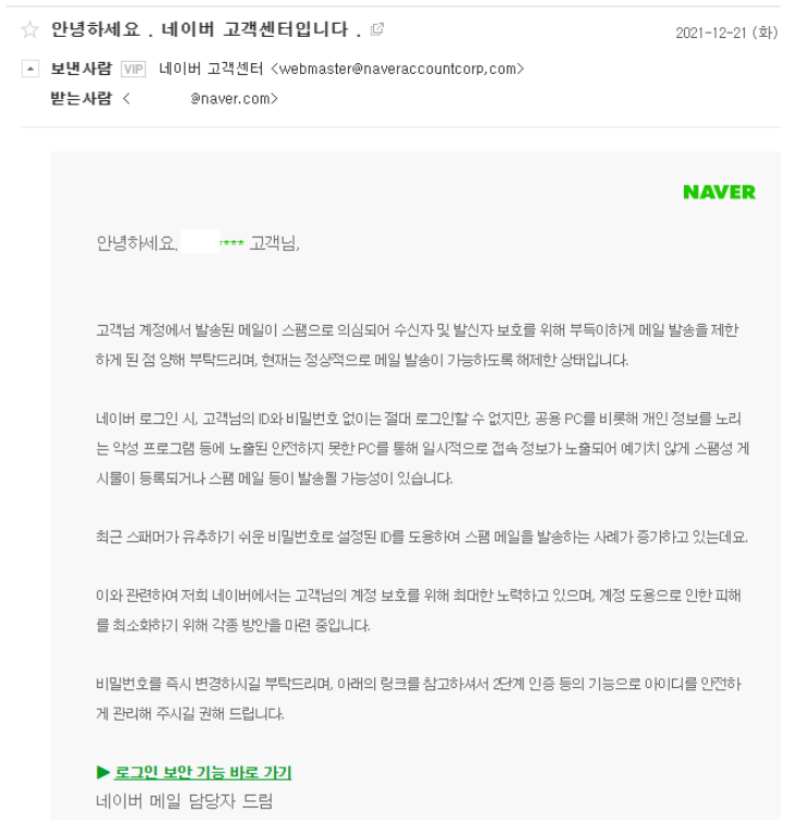 | 네이버 인증서를 확인하라는 피싱 의심 메일 (0) | 2021.12.21 |